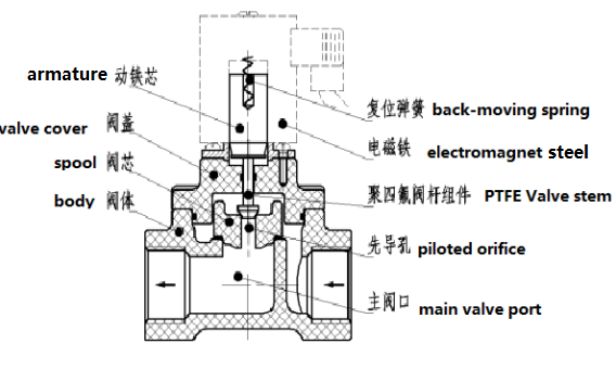 用阀杆+活塞+多重嵌入式弹性密封取代膜片,确保不会“卡死”,大大延长了电磁阀的寿命;